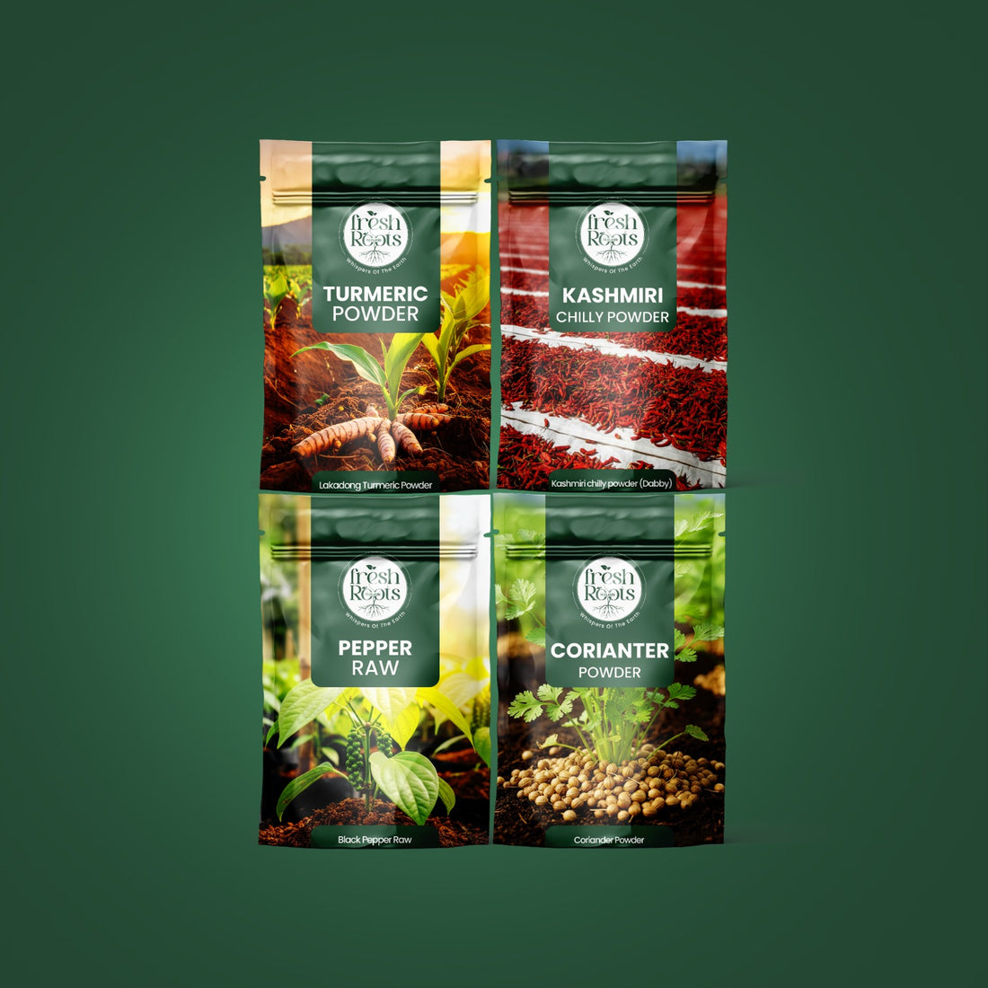 Spice Harmony Quartet: The Foundation of Flavor Lakadong Turmeric 100g+Chilli 100g+Pepper 100g+Coriander 100g Fresh Roots...