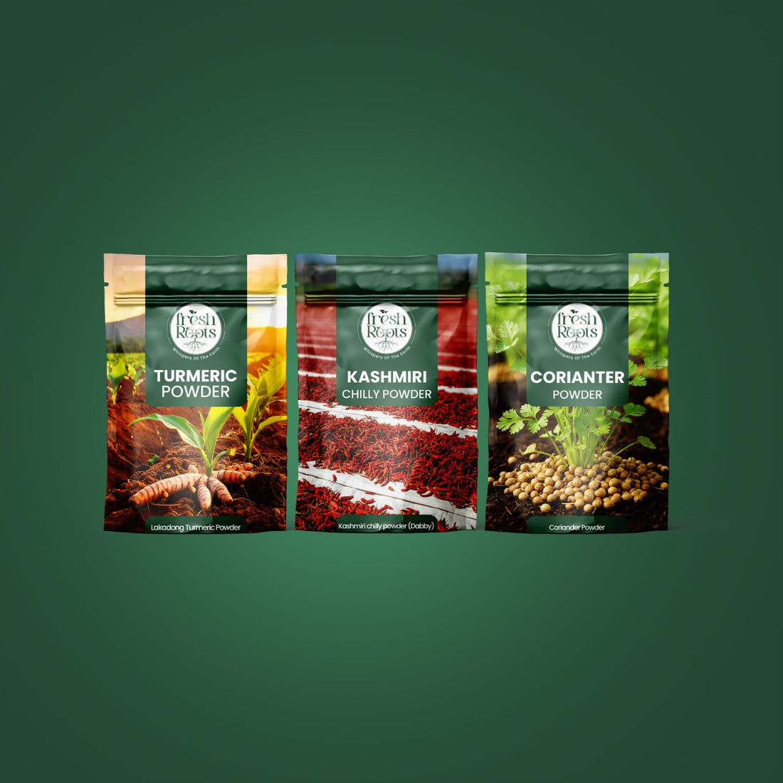 Tadka Trio: Master the Art of Indian Tempering (Lakadong Turmeric 100g+Chilli 100g+Coriander 100g) Fresh Roots...